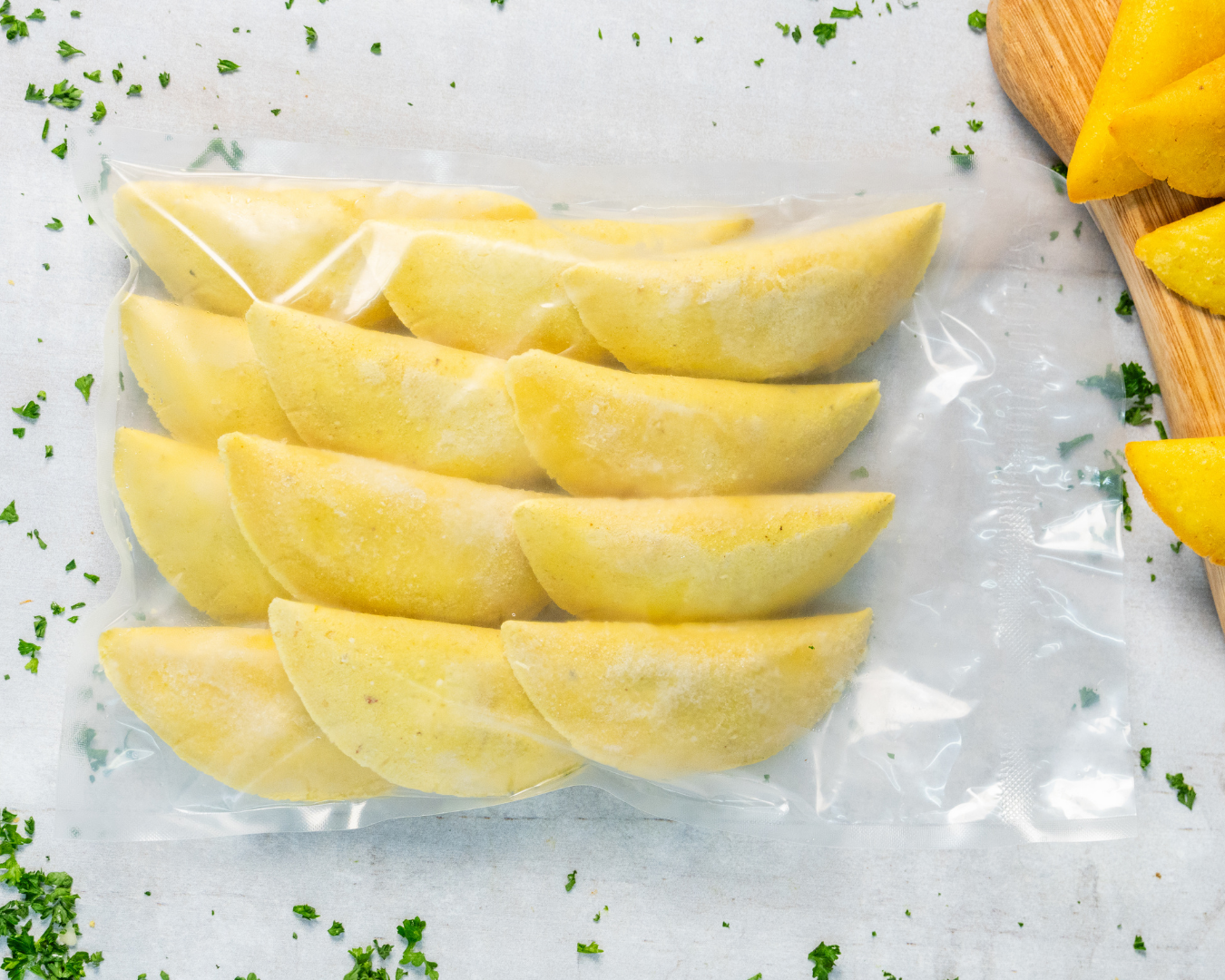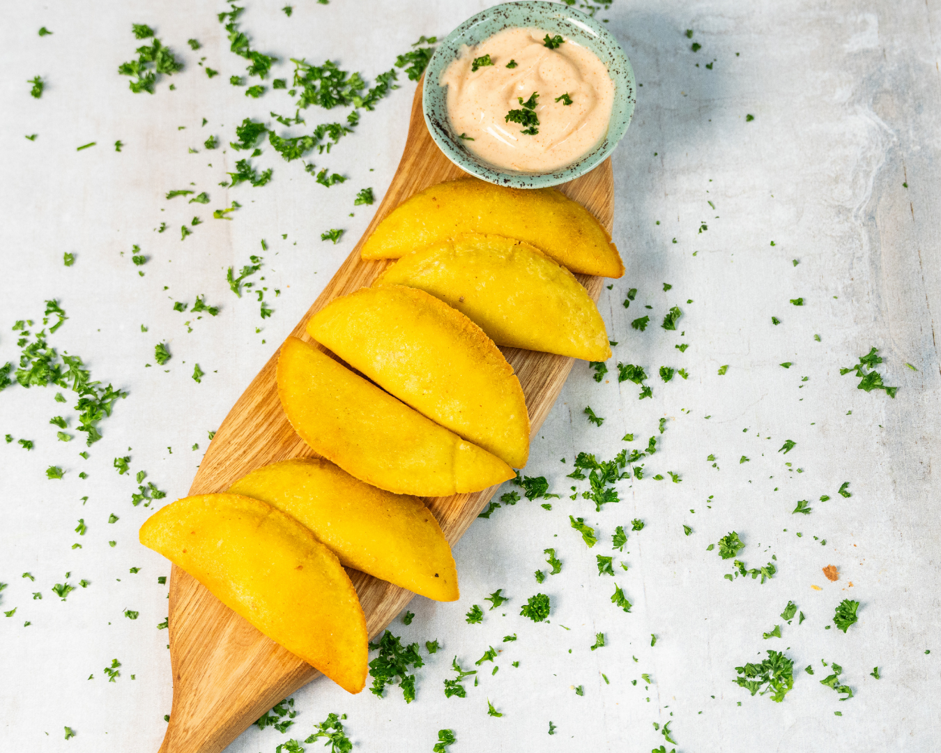Empanadas miniatura con masa de maíz dorada y relleno de pollo sazonado, listas para disfrutar en pocos minutos.