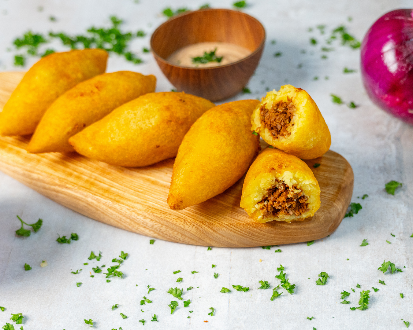 Una auténtica delicia de la gastronomía caribeña, esta carimañola está hecha con una suave masa de yuca que se fríe hasta obtener un exterior dorado y crujiente.