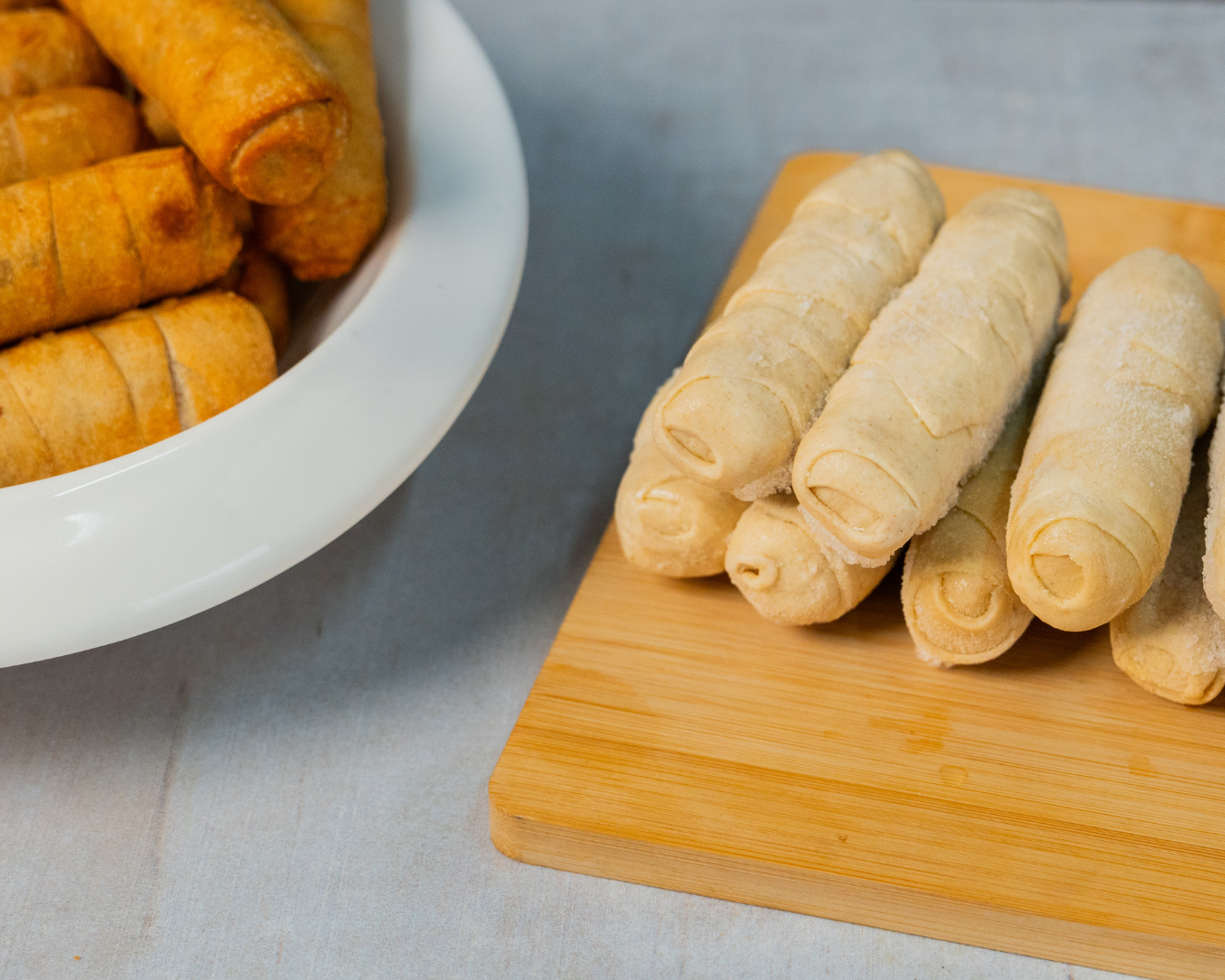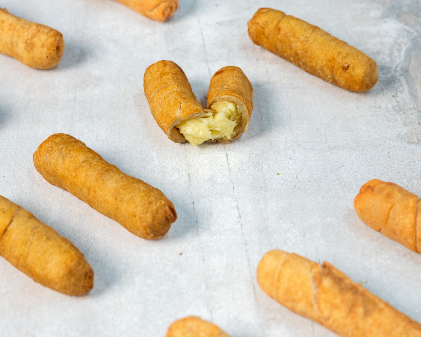 Bastones de masa ligera y crujiente, rellenos de queso fundido. Perfectos como aperitivo o para acompañar un café.