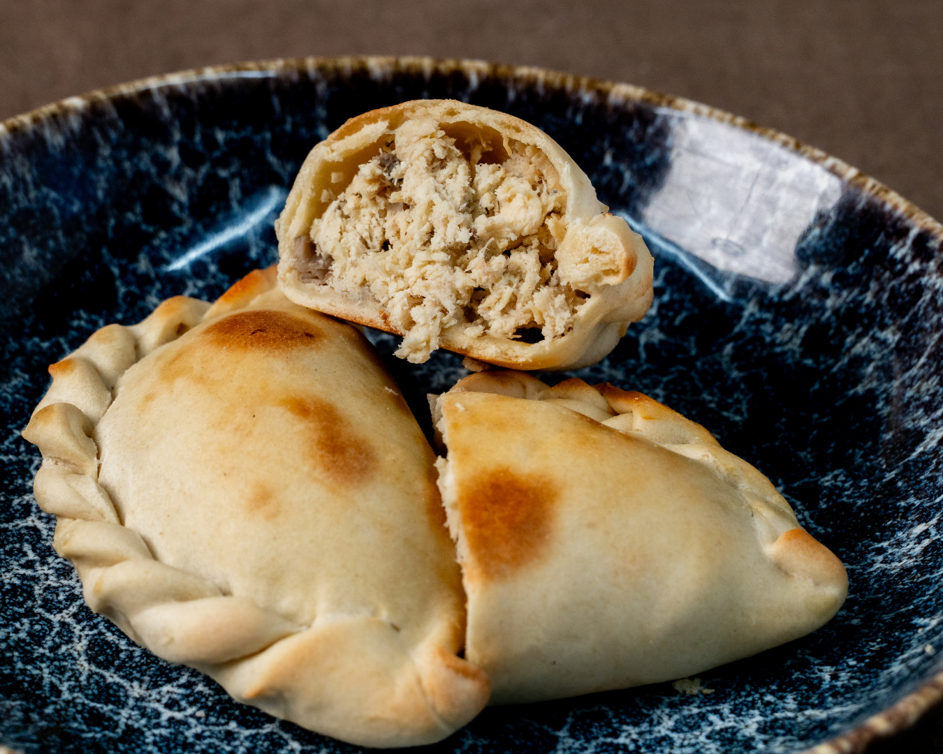 Una deliciosa empanada artesanal rellena de pollo tierno y champiñones frescos, mezclados con una cremosa salsa que resalta los sabores naturales de sus ingredientes.