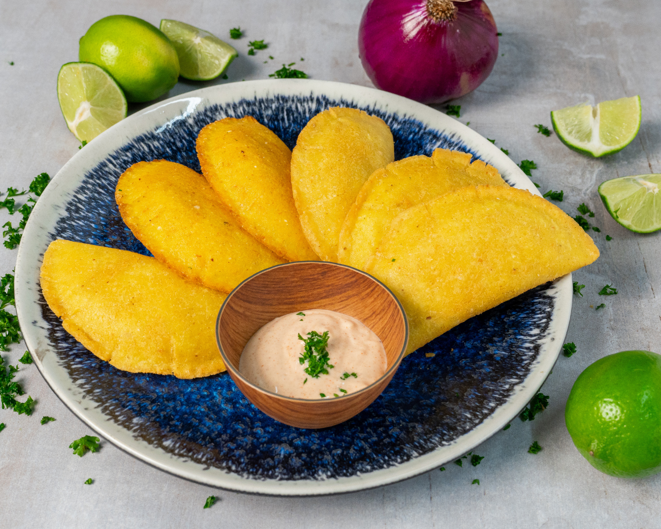 Una deliciosa empanada miniatura, elaborada con masa de maíz dorada y ligeramente crujiente, rellena con carne desmechada jugosa combinada con papa tierna y especias tradicionales. Su tamaño compacto la hace perfecta para servir como aperitivo en eventos, acompañamiento en reuniones o como snack rápido y sabroso. Cada bocado es una explosión de sabor casero que te encantará.