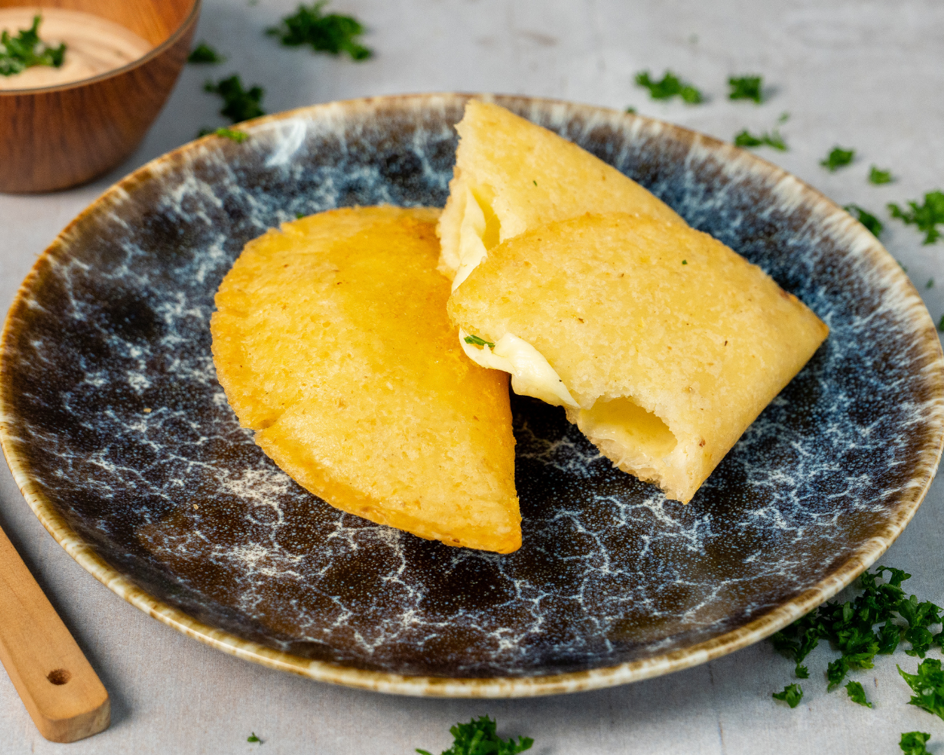 Pequeña pero llena de sabor, esta empanada de maíz está elaborada con una masa suave y ligeramente crujiente, rellena con una deliciosa mezcla de quesos que se funden perfectamente al calentarse.