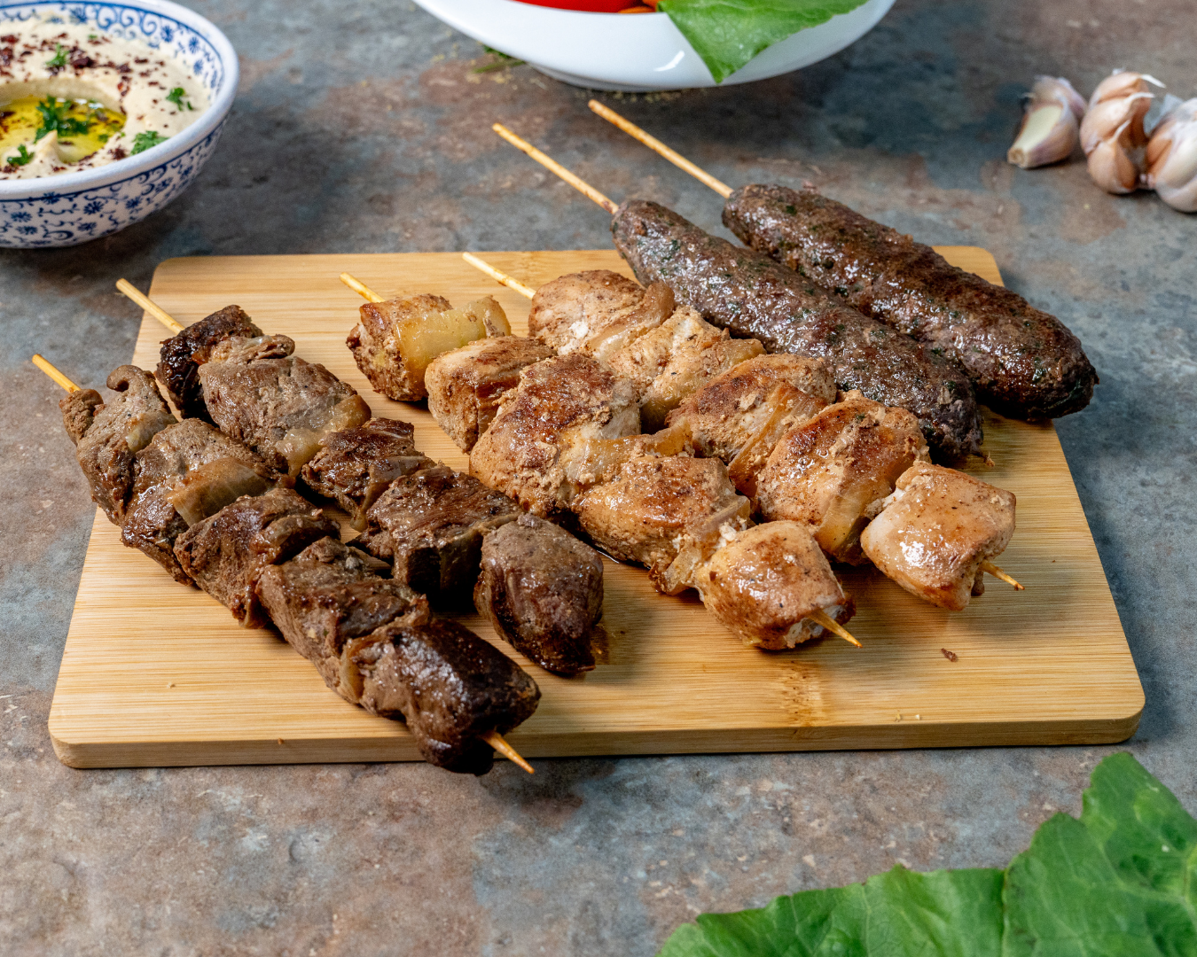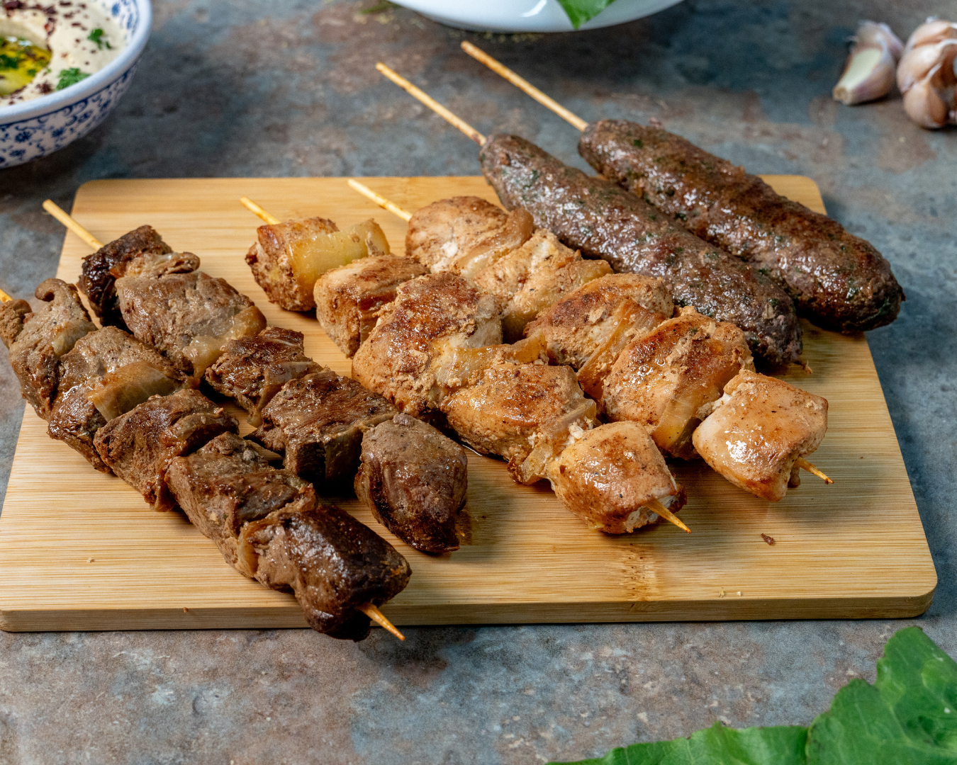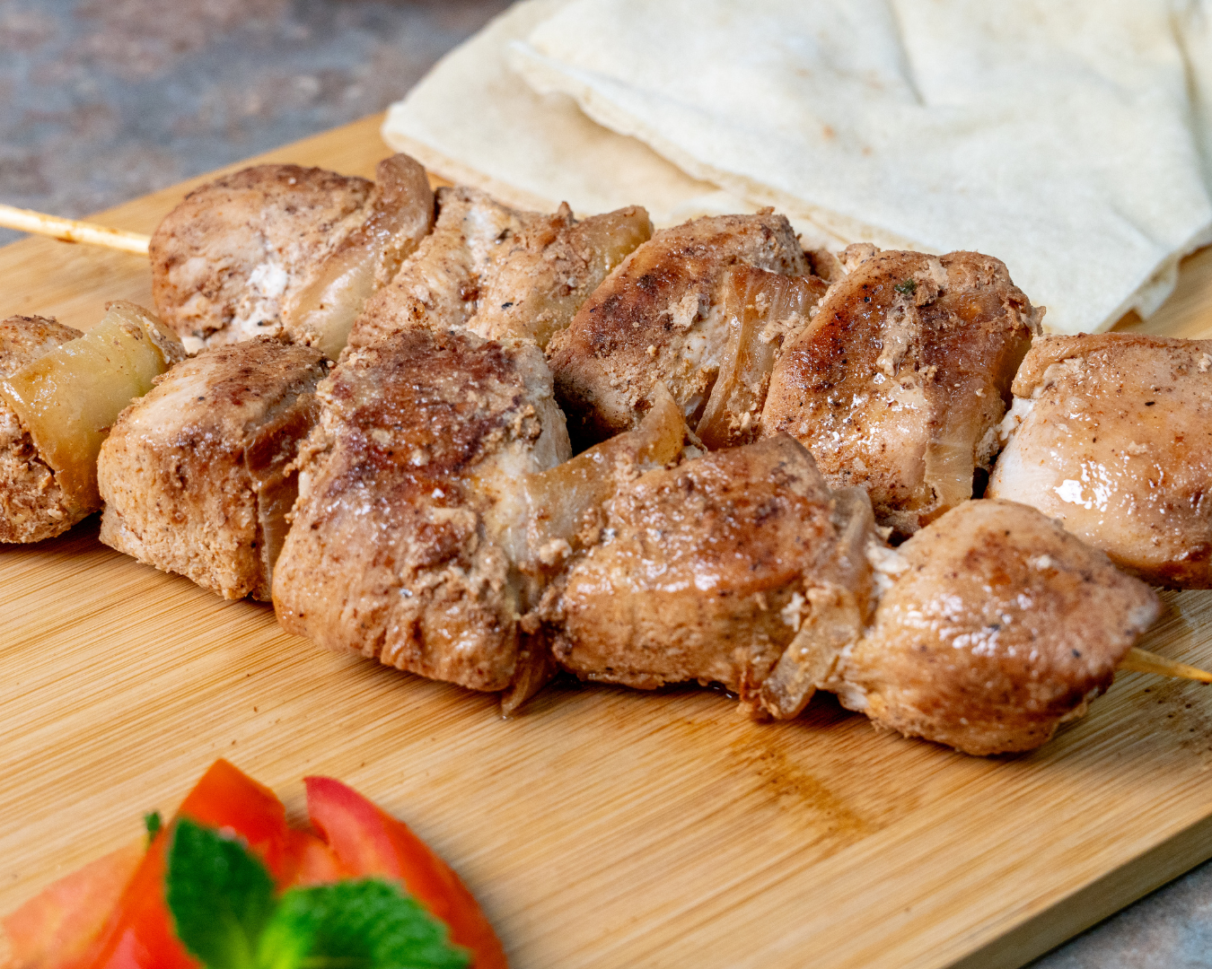 Brochetas de pollo marinadas en especias árabes, listas para la parrilla o el horno. Su sabor jugoso y especiado las hace irresistibles.