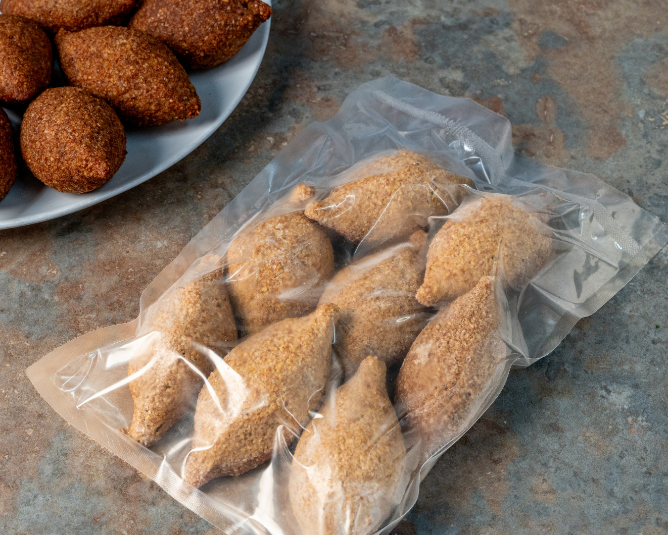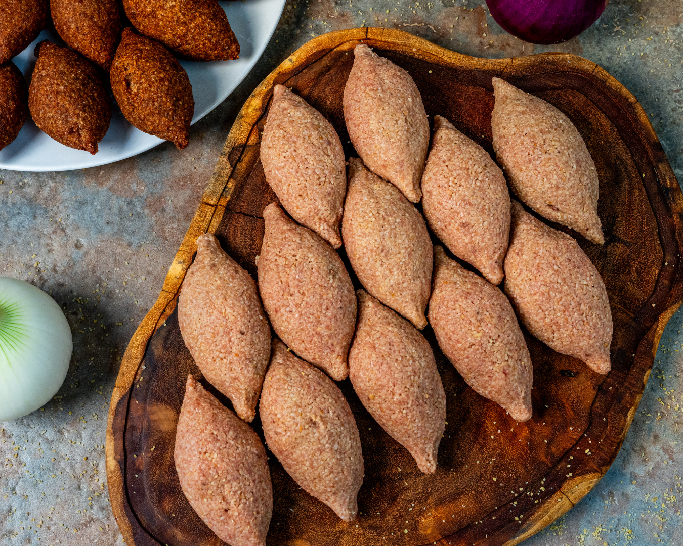 Delicioso quibbe tradicional, elaborado con carne de res molida y trigo, sazonado con especias árabes auténticas. Ideal para reuniones o catering.