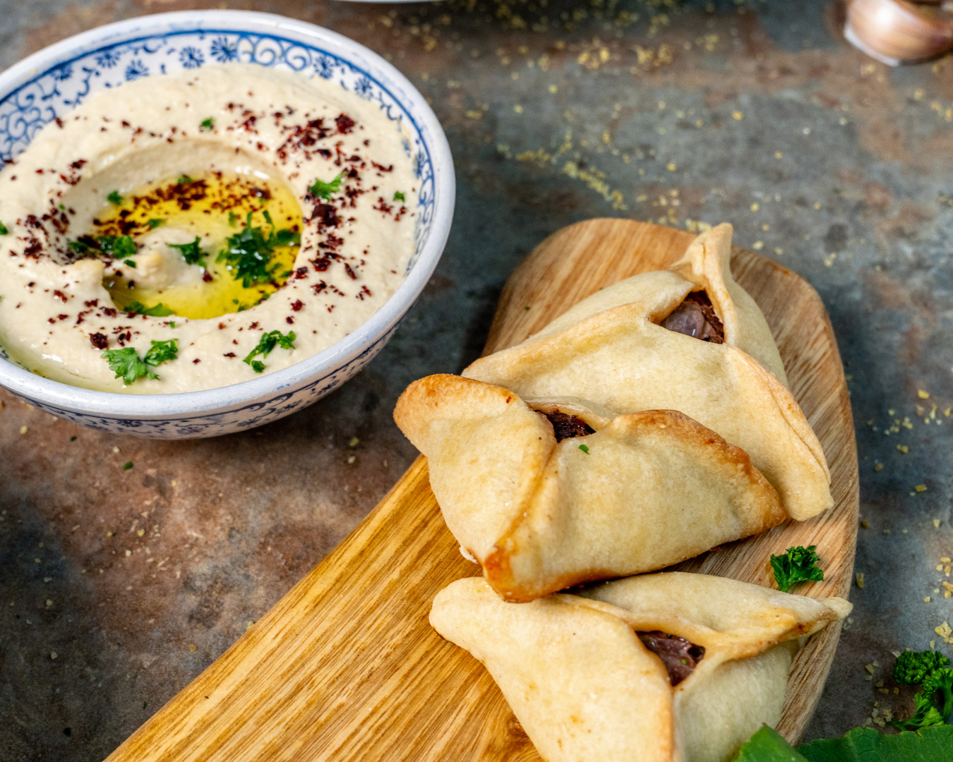 Empanadas abiertas de carne condimentada, con un toque de limón y especias como pimienta y canela. La masa es suave y esponjosa, horneada a la perfección para realzar los sabores de su relleno. Perfecta como entrada o snack.