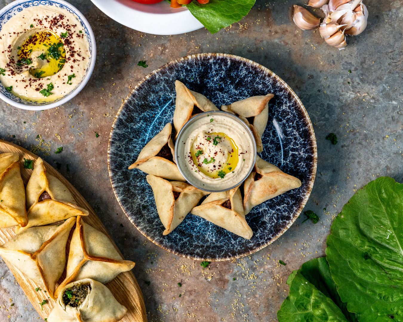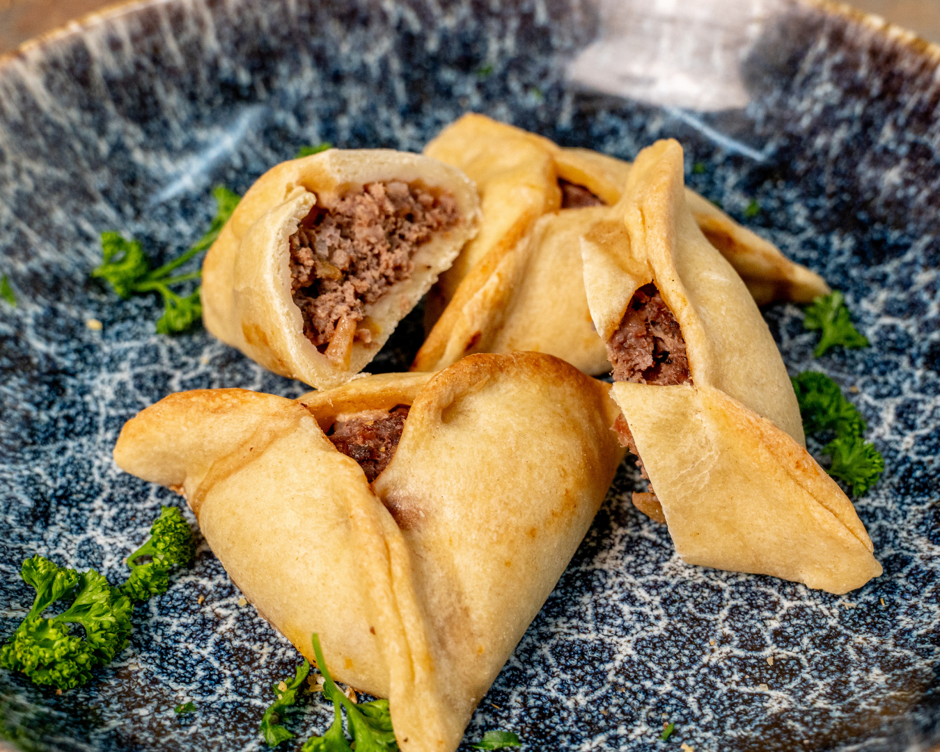 Mini empanadas abiertas de carne molida y especias, con un toque cítrico que realza su sabor. La masa es suave y horneada para lograr un equilibrio perfecto.
